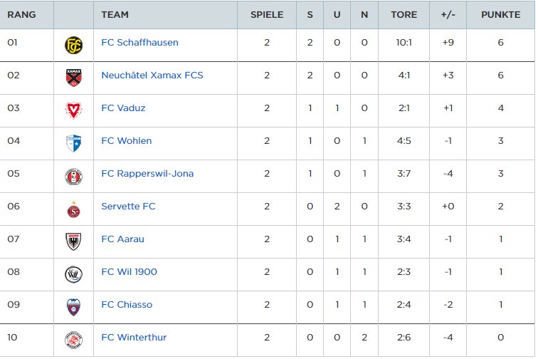 FC Schaffhausens performance of the last 5 matches is better than FC. FC Schaffhausen 169832 is underdog against FC Vaduz 180479 according to ratings from last round. 21092021 Challenge League Game week 7 KO 1800.