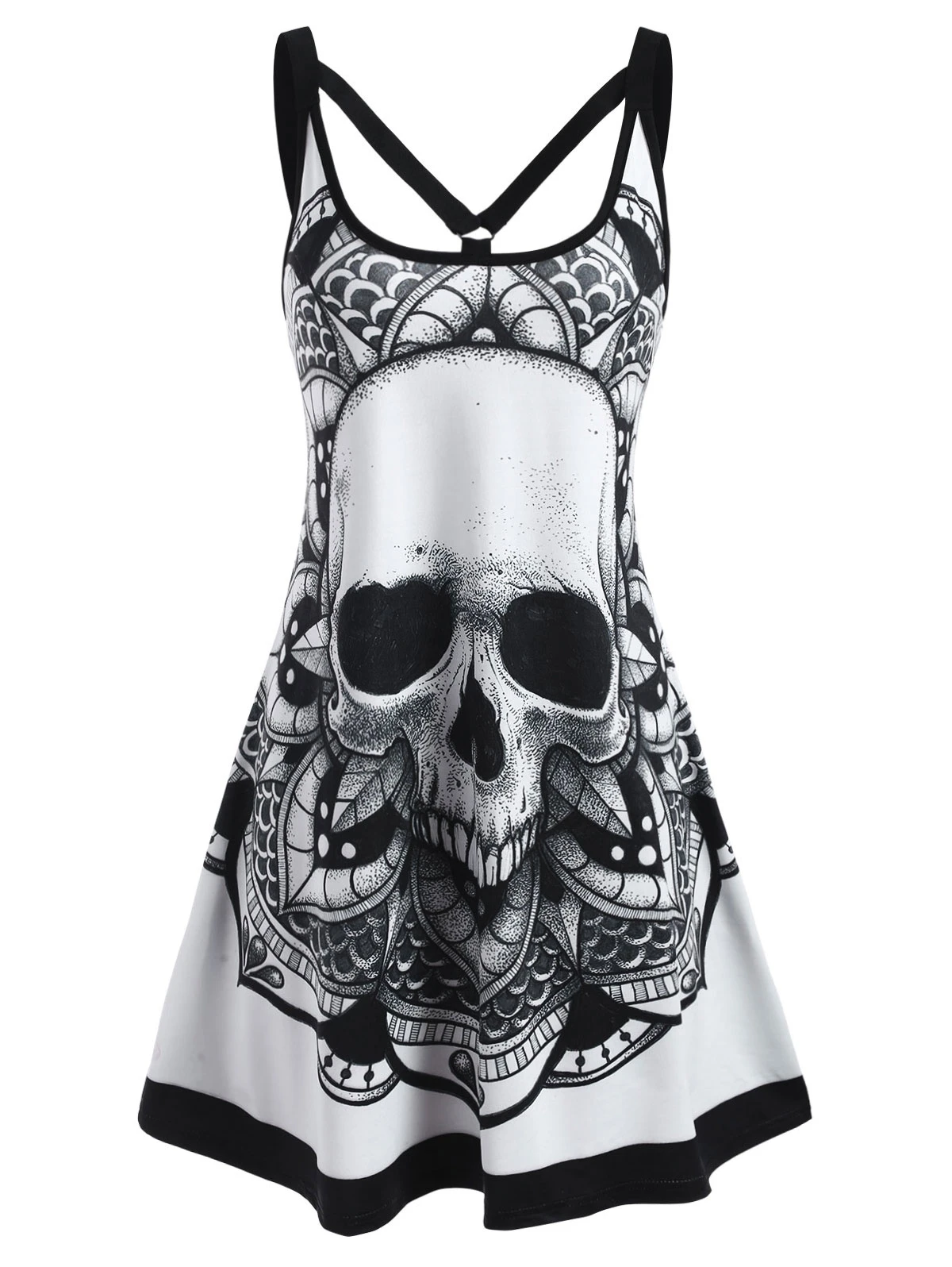 Skull Flower Print Strappy O Ring Tank Dress Women 2021 Summer Fashion Casual Sleeveless Mini Dress O Neck Vest Punk Plus Size Aliexpress Women S Clothing